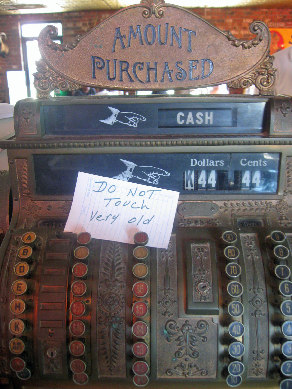 This cash register was around in the days when people could count their money as fast as a computer today. I took this photo at Hinze’s BBQ in Sealy, Texas.