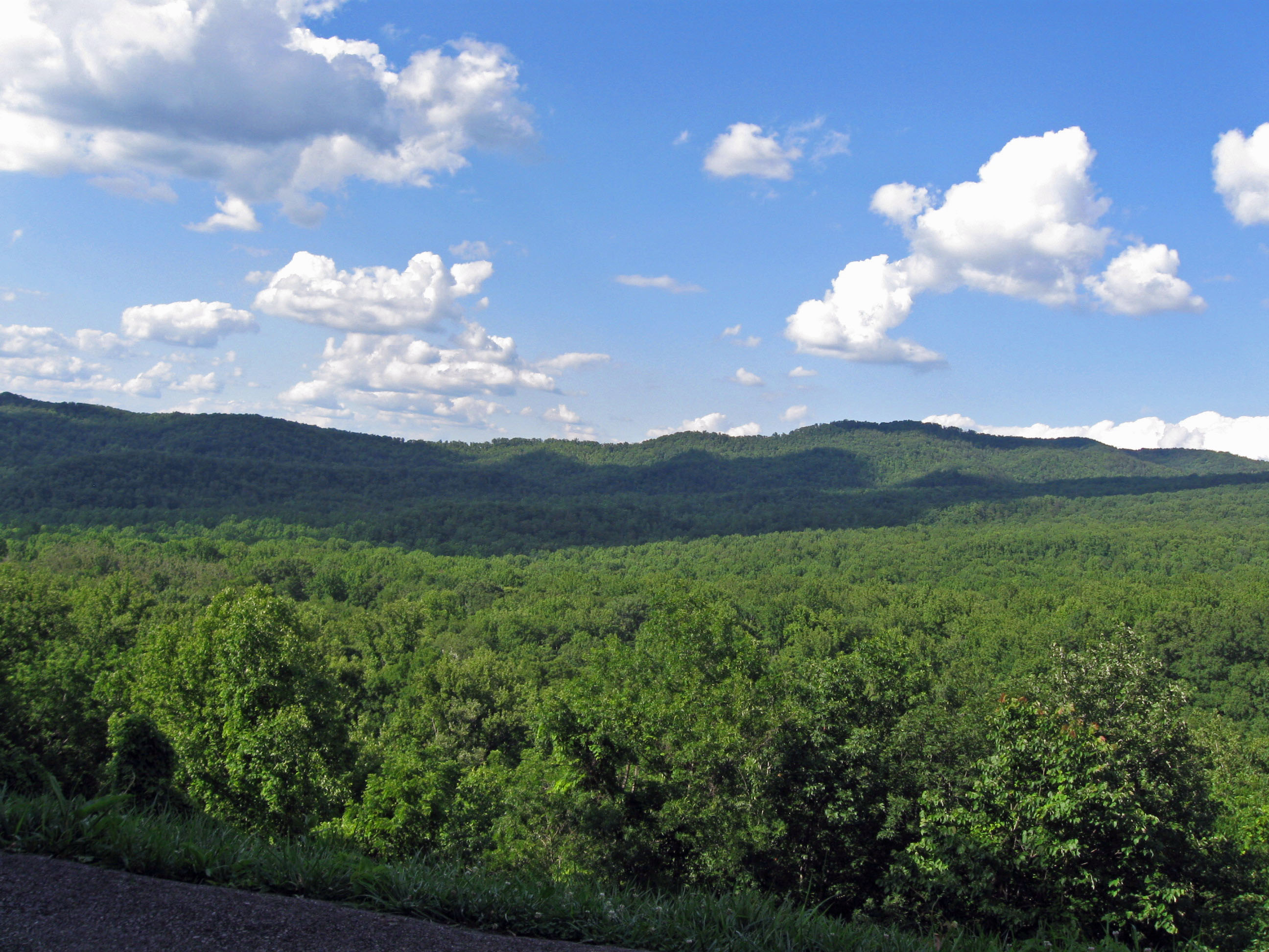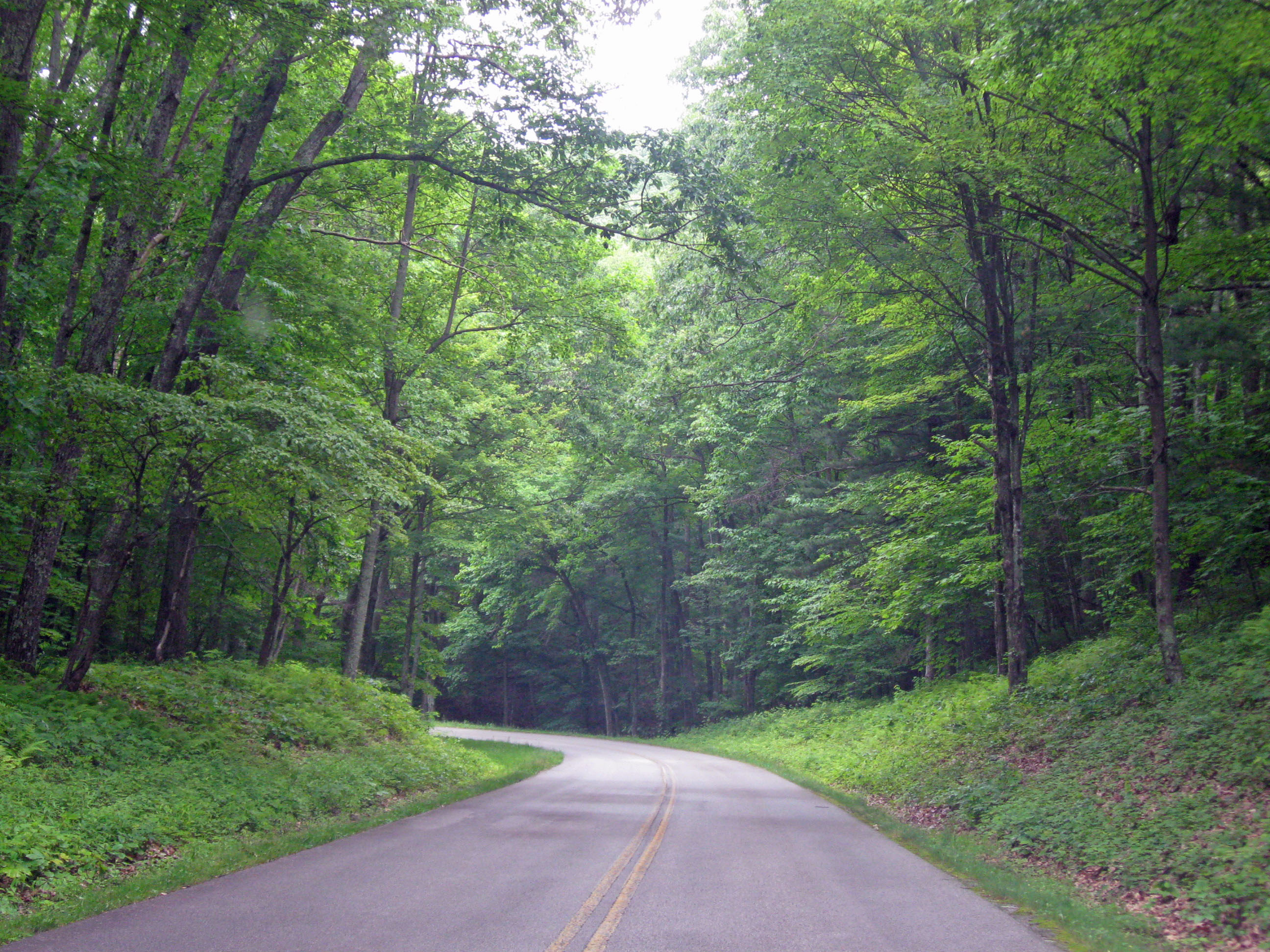 The Blue Ridge Parkway is a quiet road with a speed of 45 m.p.h. that traverses 469 miles of the east coast from North Carolina to Virginia. It is a scenic marvel!