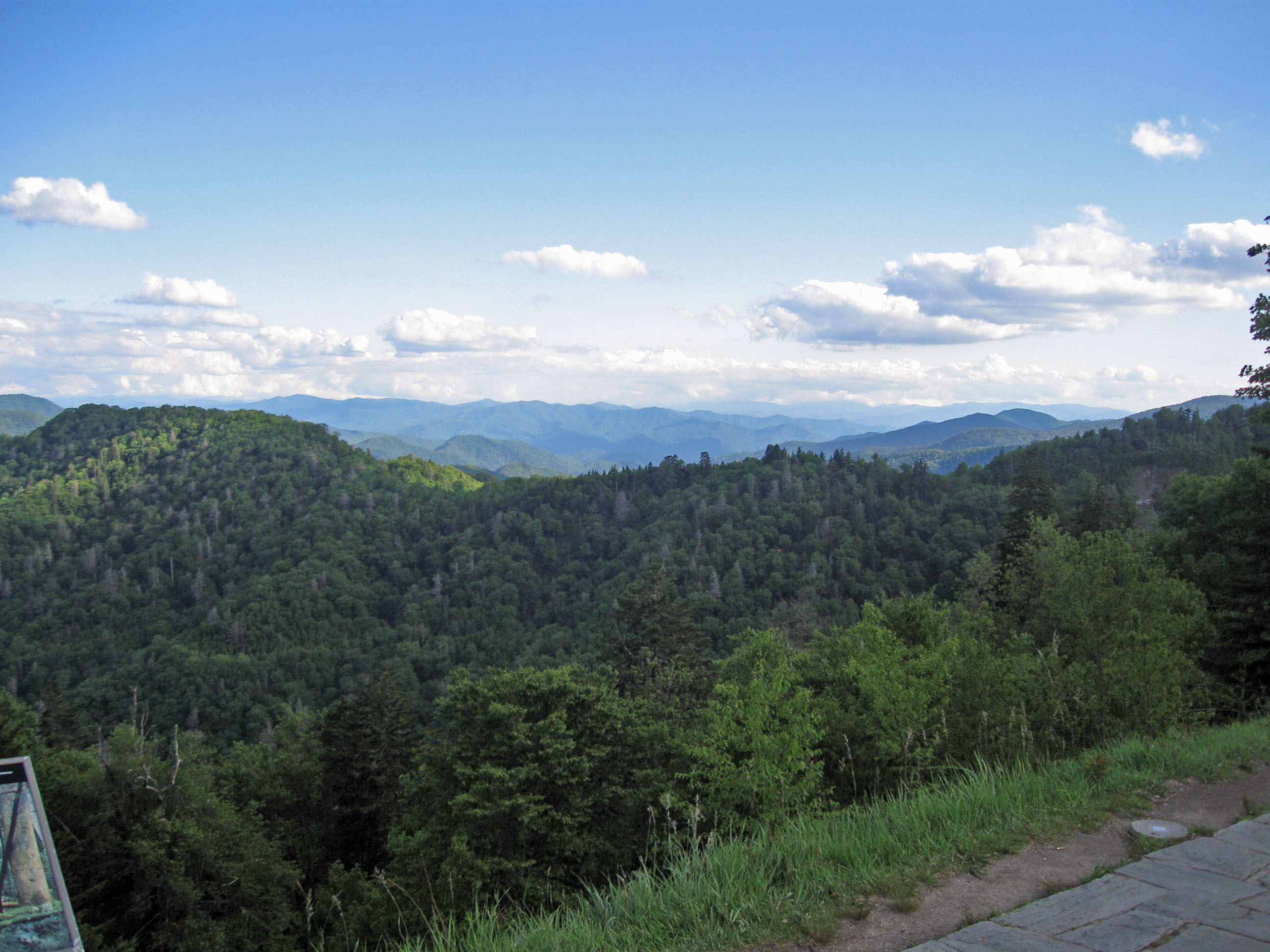 Great Smoky Mountains National Park is a United States National Park and UNESCO World Heritage Site that straddles the ridgeline of the Great Smoky Mountains, part of the Blue Ridge Mountains, which are a division of the larger Appalachian Mountain chain. The border between Tennessee and North Carolina runs northeast to southwest through the centerline of the park. It is the most visited national park in the United States.