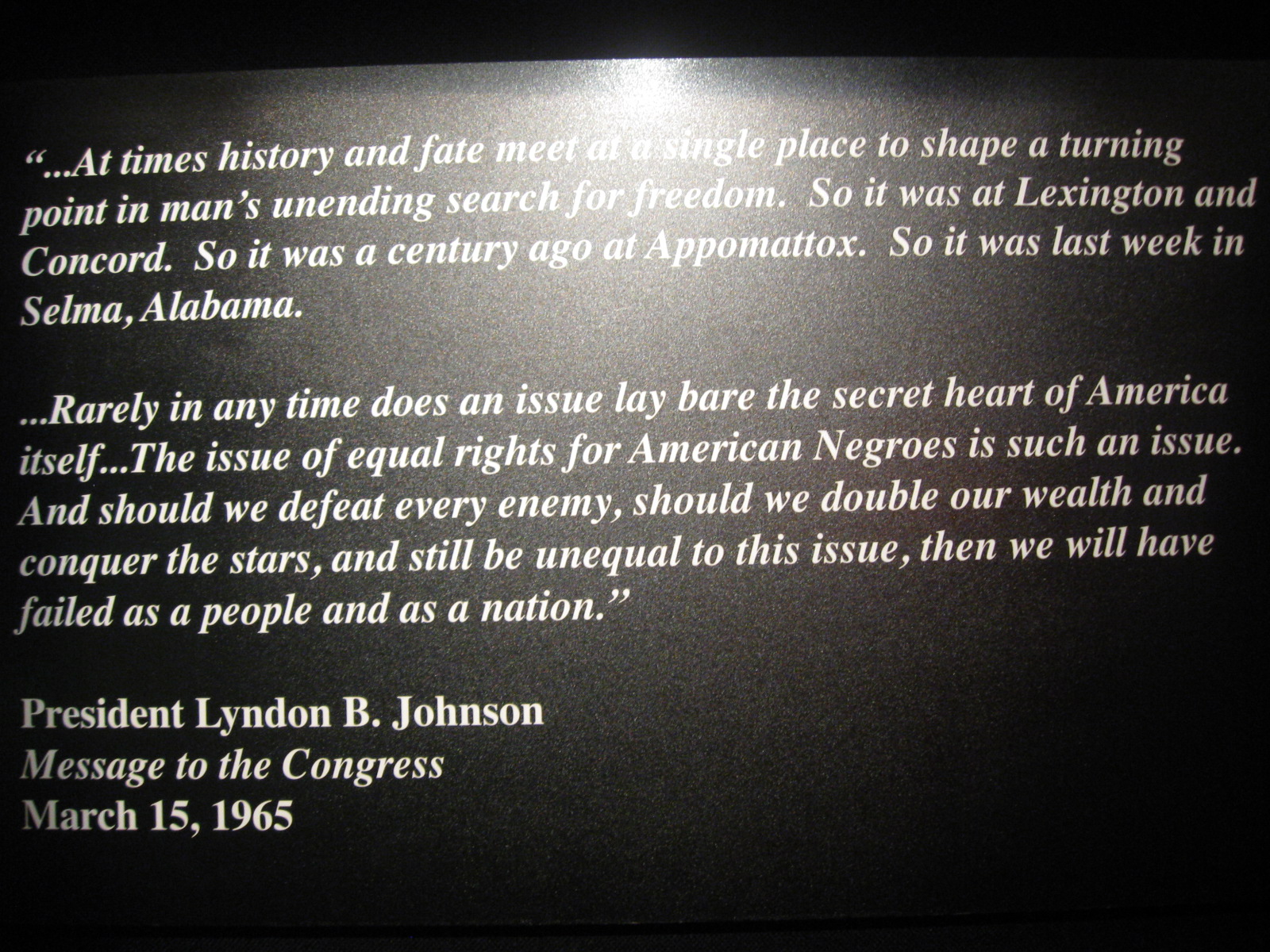 The Lyndon B. Johnson Presidential Museum in Austin, Texas is large and full of history during one of America’s most tumultuous time periods. The museum captures very clearly how troubled our country was during Johnson’s reign. Interestingly, much of what people were fighting for over 45 years ago is still ongoing today. There is always a fight for balance on the scales of justice. Whether you like Johnson, or hate him, this museum will open your mind to the many challenges of being President Of The United States.