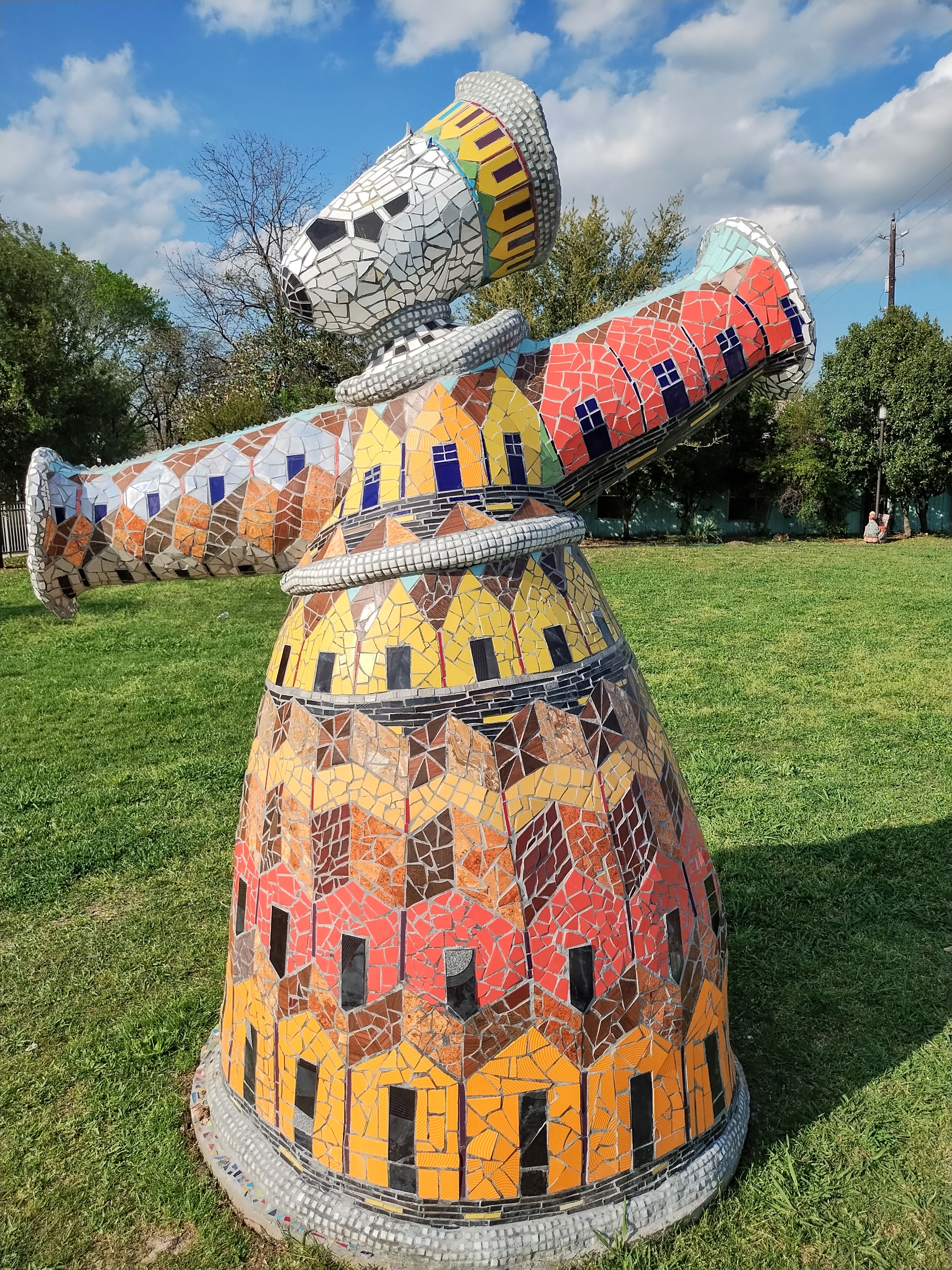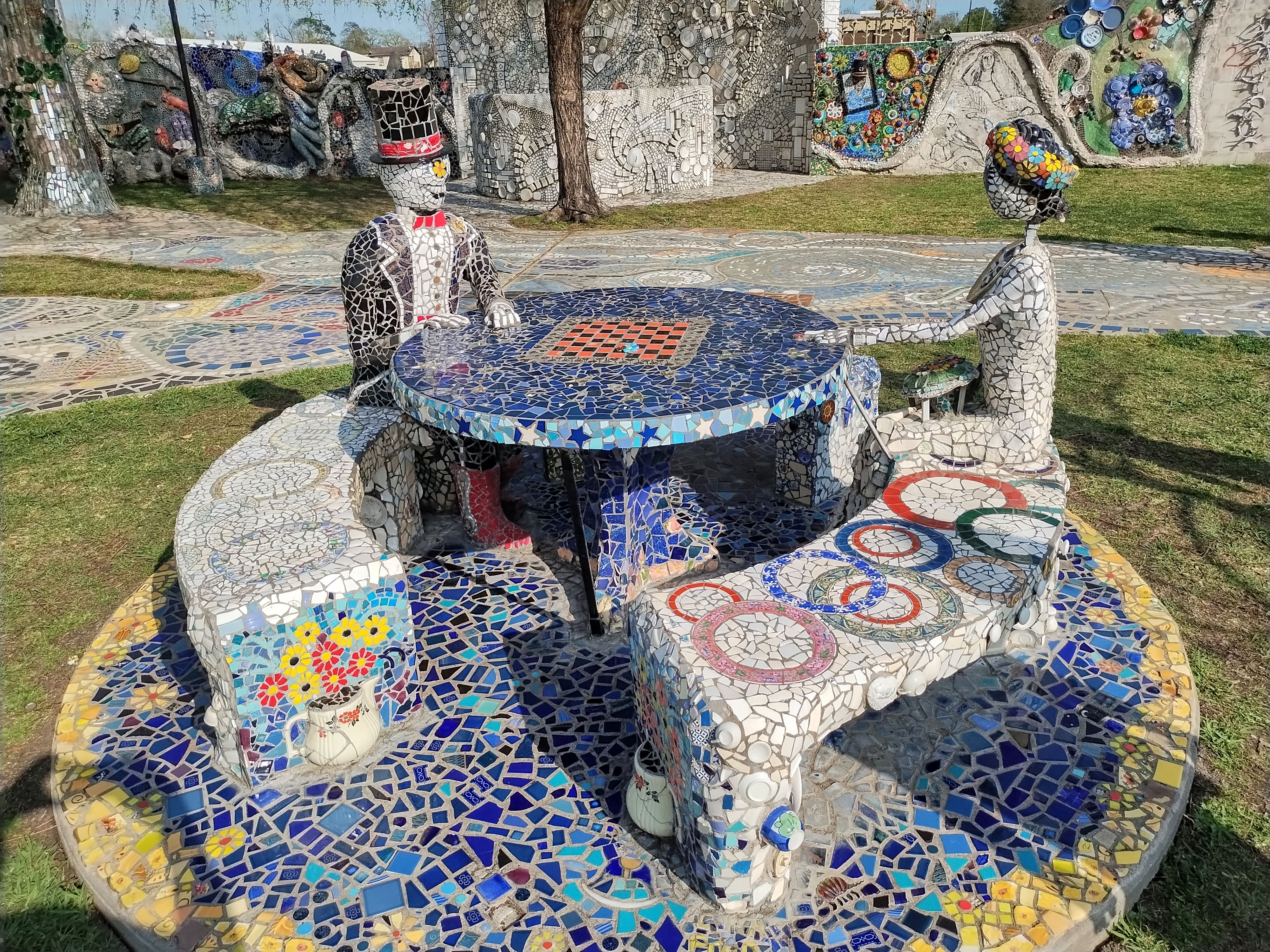 Do you ever say, “What am I going to see today? Today was one of those days for me and I decided to head on over to Smither Park which is part of the Orange Show. You can read more about it here https://www.full.orangeshow.org/smither-park It was my first visit and to say I enjoyed the art is an understatement. I immediately started taking photos because I was amazed at all the mosaics which I know have a lot of time and effort invested into them. It was a beautiful day, and I captured some beautiful art. I hope you enjoy the photos and visit yourself.