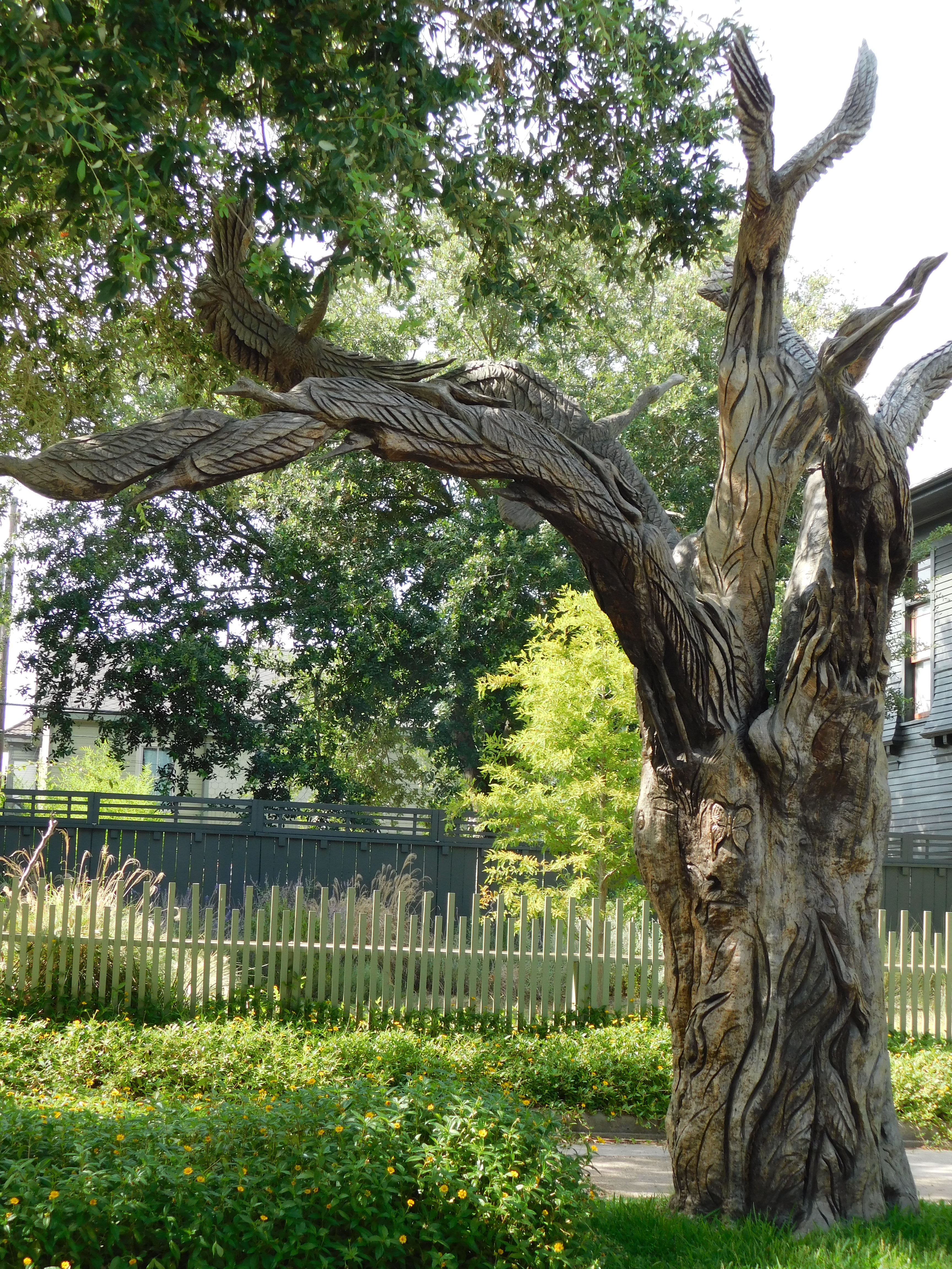 Hurricane Ike hit on September 13, 2008. It forever changed the landscape of Galveston, Texas and the greater Houston area for that matter. I’ll never forget it’s power. Oak trees are not native to Galveston, but many were planted over the years to provide shade and add beauty to the island. Several were wiped out by hurricane Ike. I recently discovered that many artists breathed life into the standing oak stumps by carving art into them. Some are whimsical and some have meaning but they add a beauty and leave a memory that there is always hope after the storm. Whatever storm it may be. It was a journey and adventure to locate many of them around the island but also a way to see Galveston that I have never seen before. The neighborhoods beyond the beaches and seawall. It was definitely like a treasure hunt! I won’t include all the sculptures here. They are for you to go and find! Adventure! The collection of photos here are some of my favorites. Enjoy!